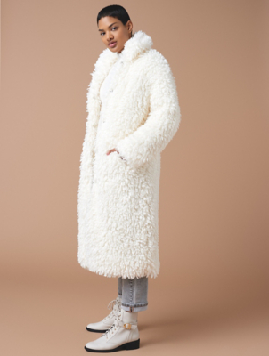 Cream Curly Faux Fur Longline Coat