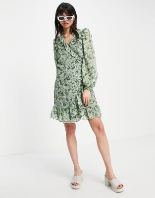 Stories puff sleeve mini wrap dress